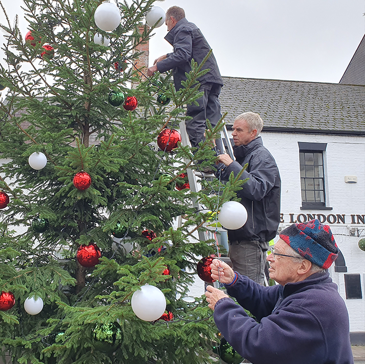 This year the Town Council ordered new decorations, which were supplied by Otter’s Christmas shop. The giant baubles in red, green and white plus oversized icicles and strings of outdoor fairy lights give a bright festive cheer to the tree.